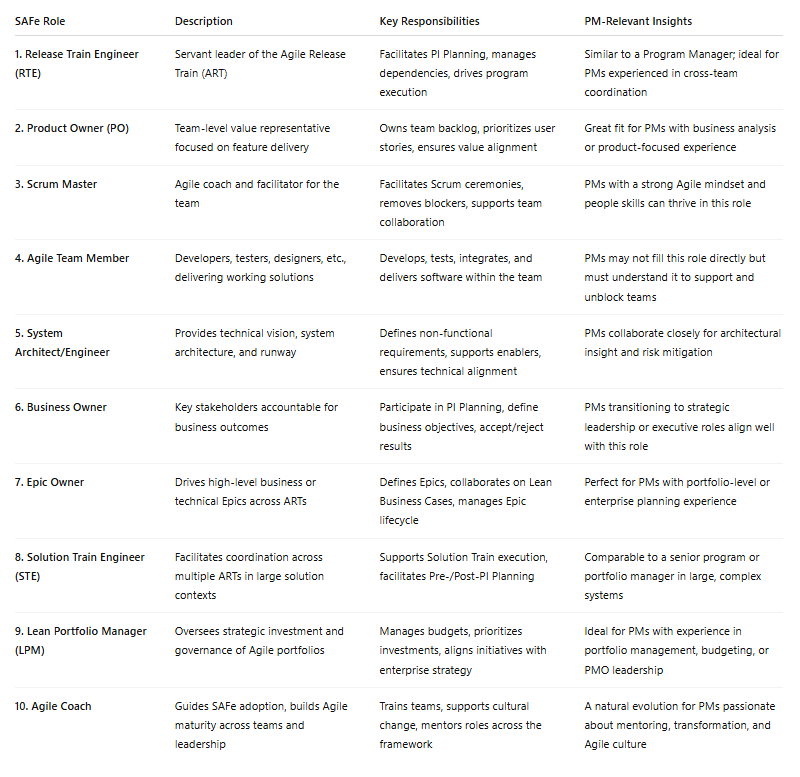 #SAFeRoles #AgileTransformation #ScaledAgile #ProjectManagerCareer #AgileLeadership #LeanPortfolioManagement #ReleaseTrainEngineer #ScrumMasterLife #ManagingProjectsTheAgileWay #AgileCoach